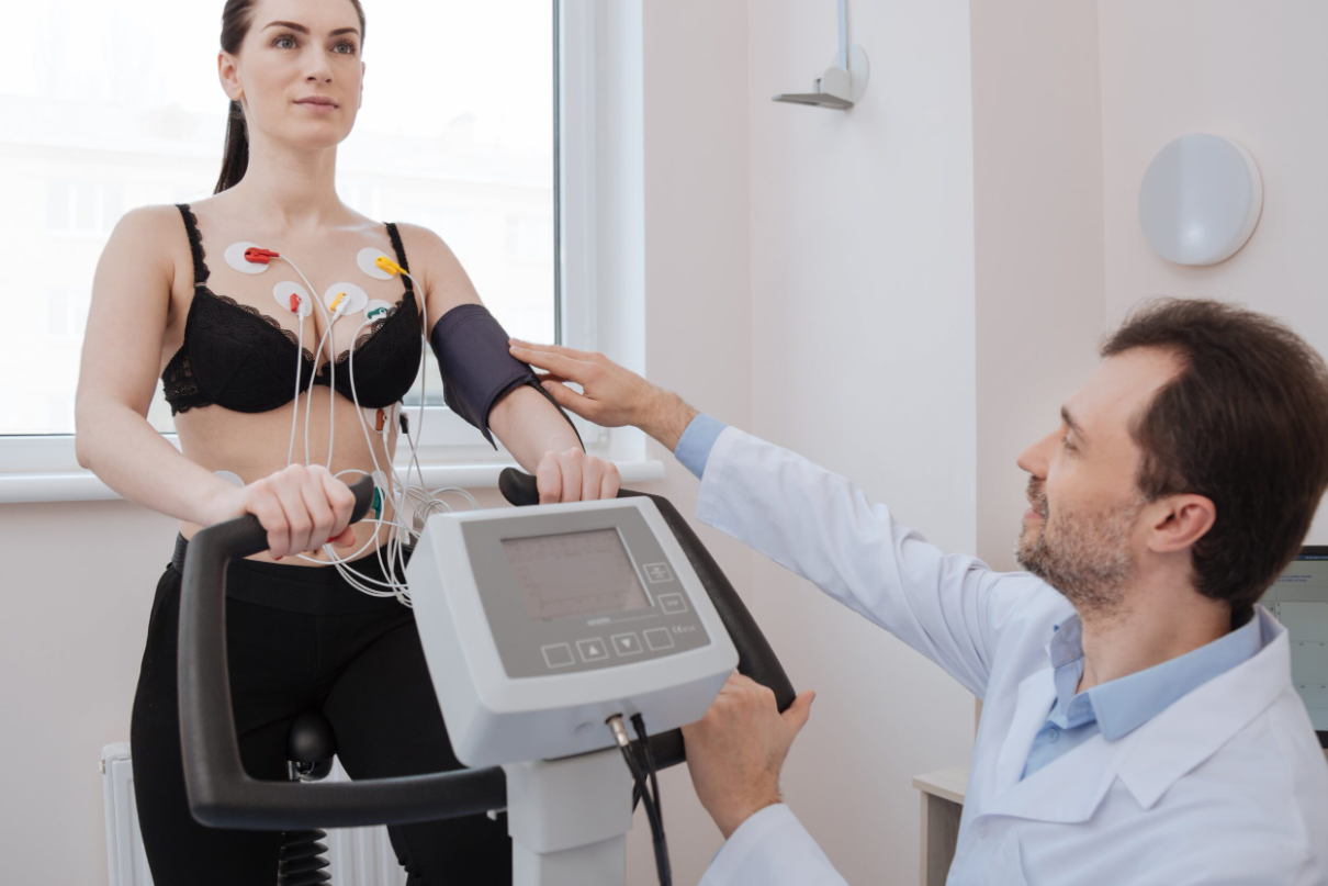 O teste ergométrico é o famoso “teste de esteira”. Durante o exame, a pessoa caminha ou corre em esteira com esforço gradual, enquanto o coração é monitorado. Ele mostra como o coração reage ao exercício, se surgem alterações no ritmo ou sinais de falta de sangue. Esse exame é útil para investigar dor no peito, cansaço, palpitação, avaliar risco de doenças do coração e até orientar a prática de atividades físicas de forma segura.